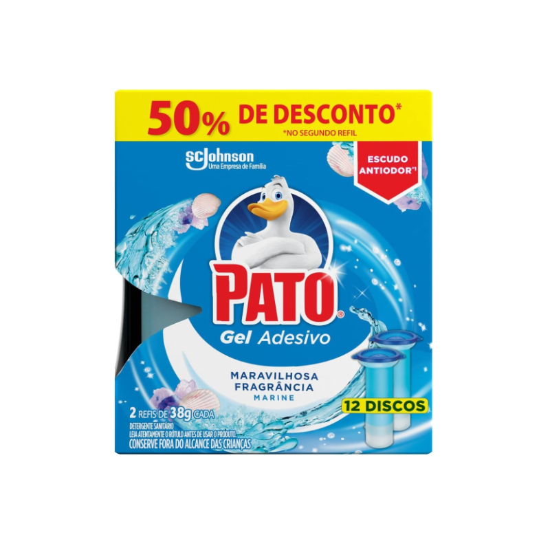 Pato Desodorizador Gel Adesivo 2 Refis Marine, Limpeza Banheiro