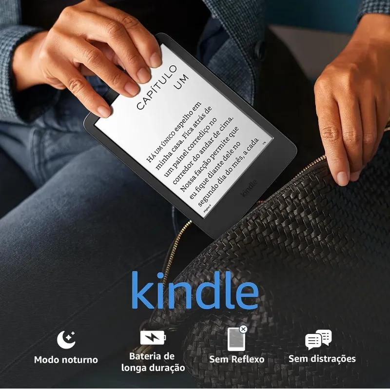 O Kindle mais leve e compacto, agora com tela de 300 ppi de alta resolução para textos e imagens nítidos.