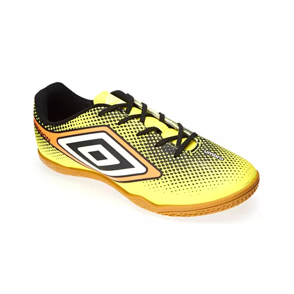 Cabedal construído em material sintético laminado com aplicação de serigrafia em 3 cores e forro em tecido de poliéster. Possui Diamante Umbro na lateral estilizado com a assinatura do modelo, atacador convencional e palmilha interna em EVA forrado. O solado de futebol indoor é composto por blenda de TPU e PVC.