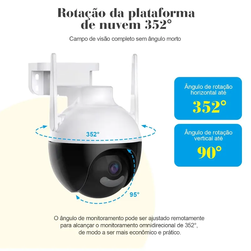 - O ângulo de monitoramento pode ser ajustado remotamente para alcançar o monitoramento omnidirecional de 352°, de modo a ser mais econômico e prático