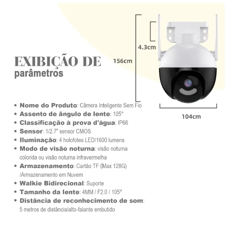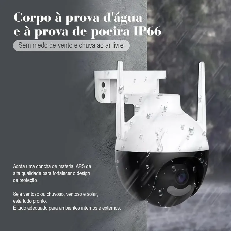 Câmera IP Sem Fio de Segurança Externa HD 4MP, WiFi, PTZ 360 Graus, Detecção de Movimento IP66
