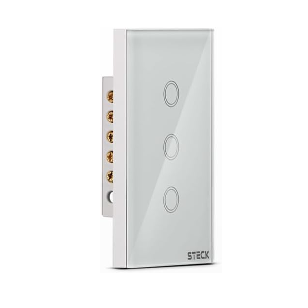 Steck, Interruptor Inteligente 4×2 Touch Wi-Fi 3 Módulos, Bivolt