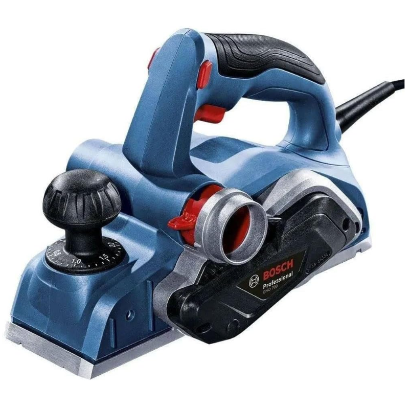 A Plaina Bosch GHO 700, com 700 W de potência, traz facilidade para aplainar as superfícies sem esforço, mesmo nas madeiras mais duras, pois possui facas duplas de metal duro (TCT Carburo de Tungstênio). Seu acabamento é perfeito, pois conta com base usinada de alumínio e mecanismo de ajuste de profundidade de corte de até 2,6 mm, além da eliminação de cavacos bilateral e centro de gravidade no punho, que aumenta a sensação de equilíbrio e gera menos fadiga. Pronta para usar, a Plaina Bosch GHO 700 vem com 2 lâminas TCT, 1 saco coletor de pó, 1 suporte de guia e 1 chave. É indicada para uso profissional e conta com 1 ano de garantia.