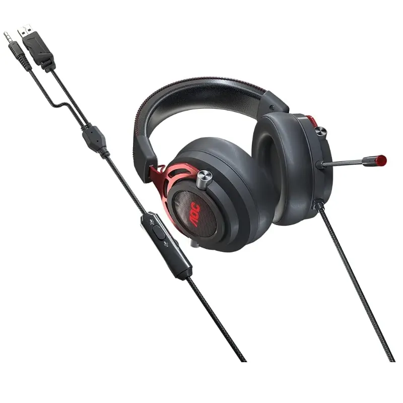 Headset Gamer AOC GH210, Driver 50 mm, LED, com microfone removível.