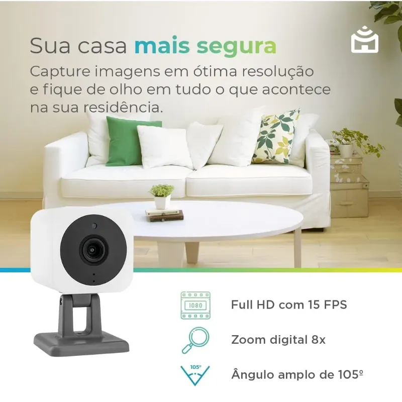 A Smart Câmera Wi-Fi permite que dê uma espiadinha na sua casa mesmo de longe, seja para visualizar os cômodos ou como está o bebê, avós ou pet. Isso sim é estar perto e atentos com quem amamos sempre! .