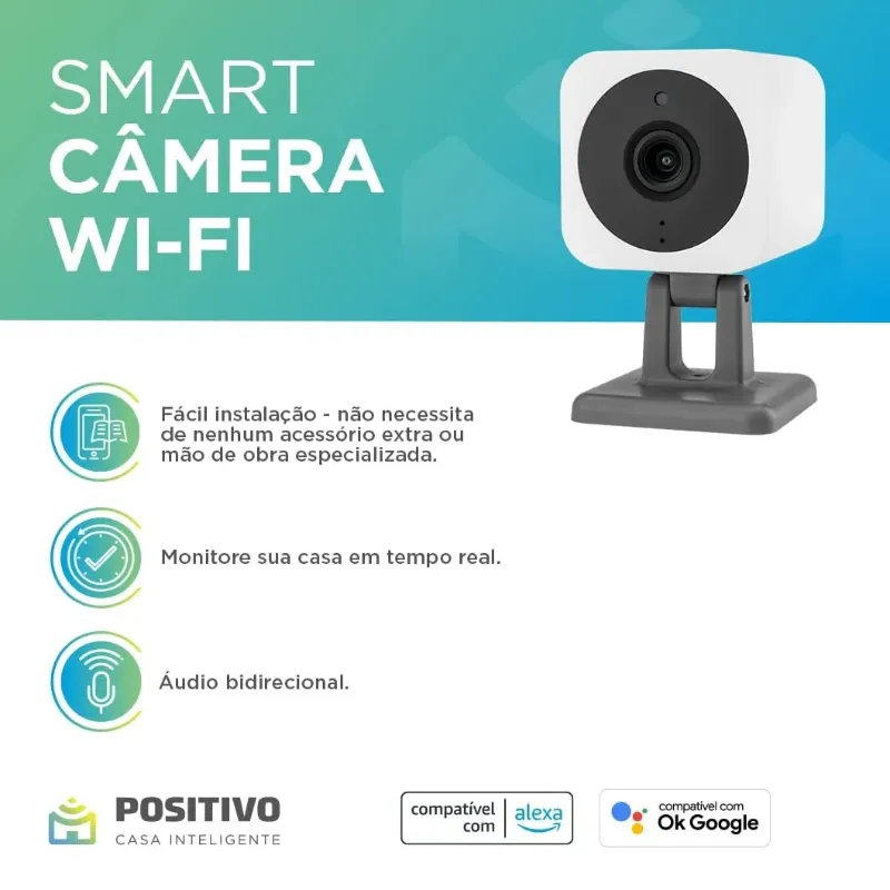 Smart Câmera Wi-Fi Positivo Casa Inteligente, 1080p Full HD, 20 FPS, áudio bidirecional, detecção de movimentos, visão noturna