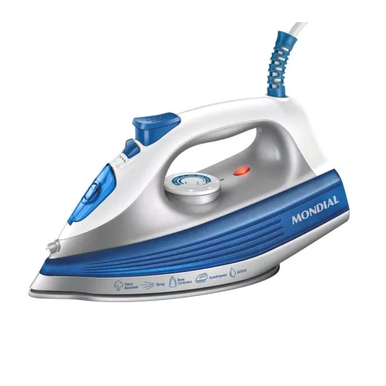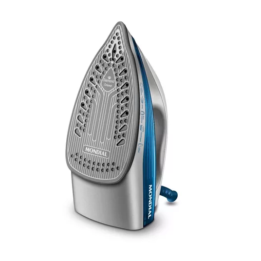 Ferro A Vapor Fvn01bl 1200w Branco E Azul Mondial, ideal para passar suas roupas com menos esforço e mais agilidade. Possui tecnologia de Base Cerâmica Diamante que facilita o deslize sobre os tecidos.