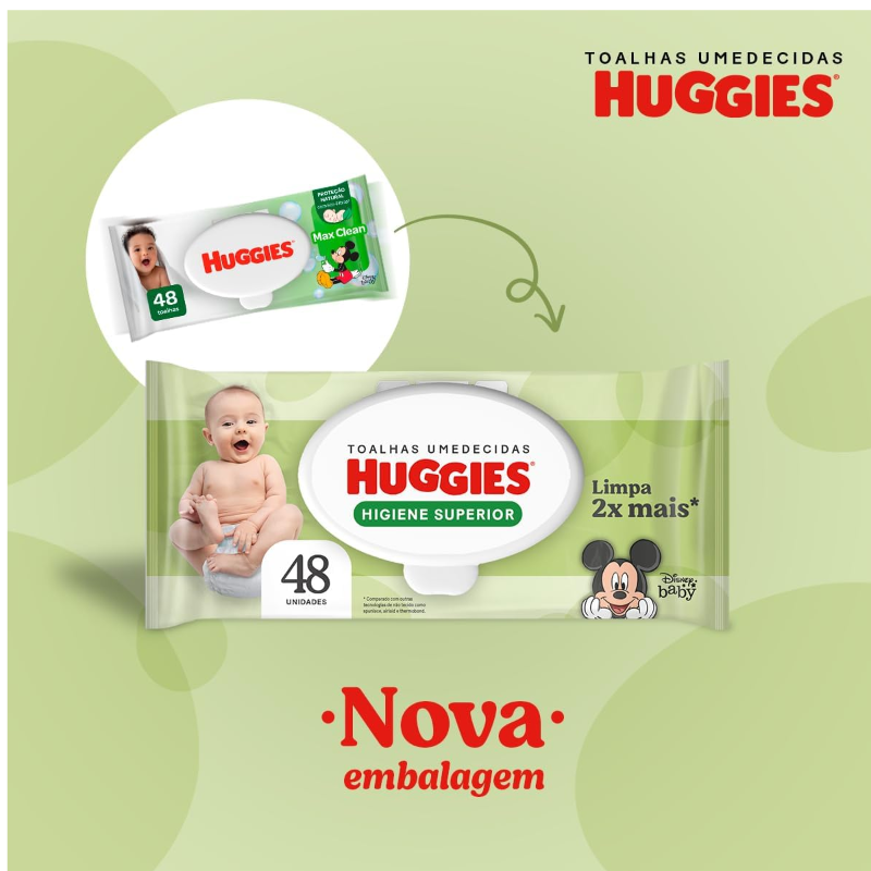 Máxima limpeza desde a 1ª passada. As Toalhas Umedecidas Huggies Max Clean foram elaboradas com ingredientes suaves e delicados, para garantir uma limpeza segura e efetiva da pele do seu bebê. Além de ajudar a prevenir assaduras e oferecer praticidade ao seu dia a dia. Quantidade: 96 lenços