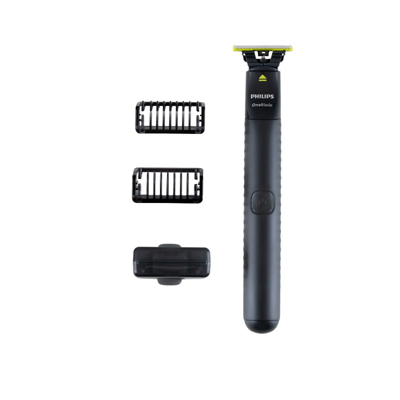 Se você quer deixar os pelos do rosto bem aparados, um barbeador de qualidade é preciso pra fazer bem essa tarefa e não se machucar. Olha só o Barbeador Elétrico da Philips. Esse é o Male Grooming, da Linha One Blade. Esse aparador de pelos pode ser usado tanto Seco quanto Molhado, afinal de contas ele é à prova d'água. O One blade é usado sem fio, possui 1 Velocidade e tecnologia que mantém a lâmina distante da pele para aparar apenas os pelos e não te cortar. Ah, ele ainda vem com Acessórios como os 2 pentes para barba: 1 e 2 mm, assim você consegue escolher o nível que deseja e capa protetora da lâmina.