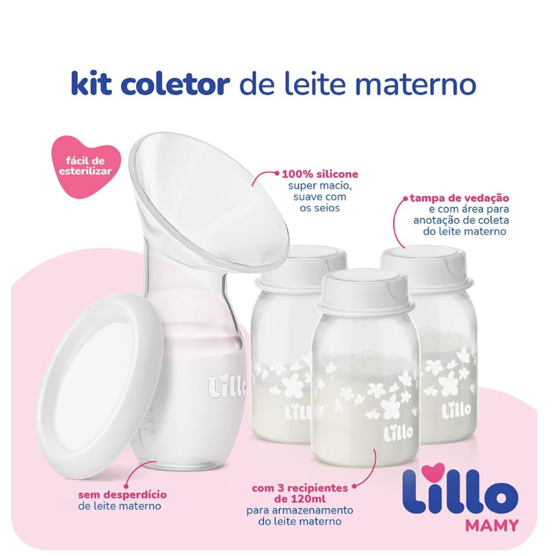 O Kit Coletor de Leite Lillo Mamy é a solução ideal para auxiliar as mães no dia a dia, durante o trabalho ou em viagens, e tornar a experiência mais prática e confortável, tendo à disposição uma solução completa e confiável para auxiliar em todas as etapas da amamentação, desde a coleta do leite até o armazenamento seguro. O Kit contém o Coletor de Leite em Silicone e três Potes para o Armazenamento do leite. O Coletor de Leite Materno Lillo foi especialmente projetado em silicone 100% macio e pode ser utilizado em diferentes momentos, seja em conjunto com a amamentação, com bomba manual ou elétrica, ou em um único seio para coletar de forma natural o leite ejetado através de uma sucção gentil. Não é necessário o uso das mãos após formar o vácuo no seio. O coletor graduado auxilia no controle do fluxo de leite extraído. Sua tampa protetora mantém o coletor limpo e seguro. Os três Potes para Armazenar Leite Materno contêm 120ml cada, sendo recomendados para o armazenamento e o transporte do leite em segurança e podem ser aquecidos ou congelados. Além disso, o recipiente de leite possui uma área de anotações em sua tampa, recomendamos que seja feita a lápis, para colocar as informações da coleta. Após o uso, remover a anotação com borracha branca. O kit é livre de Bisfenol-A e PVC, garantindo a segurança da mamãe e da criança.
