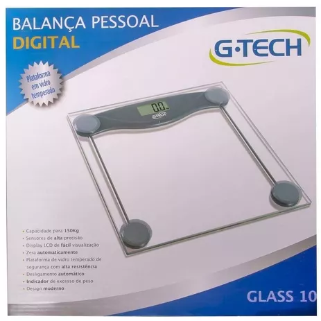 A balança G-Tech Glass 10 é ideal para acompanhar o processo de desenvolvimento das crianças mês a mês. Prática e simples de usar, você poderá manter sua alimentação sob controle nos primeiros meses de vida.Com a balança digital da G-Tech obtenha o seu peso com alta precisão e segurança. É feita com uma plataforma de vidro temperado de 8 milímetros para lhe dar maior conforto. Por sua vez, possui uma grande tela LCD para que você possa visualizar melhor os resultados. Além disso, liga com um simples toque e tem desligamento automático.