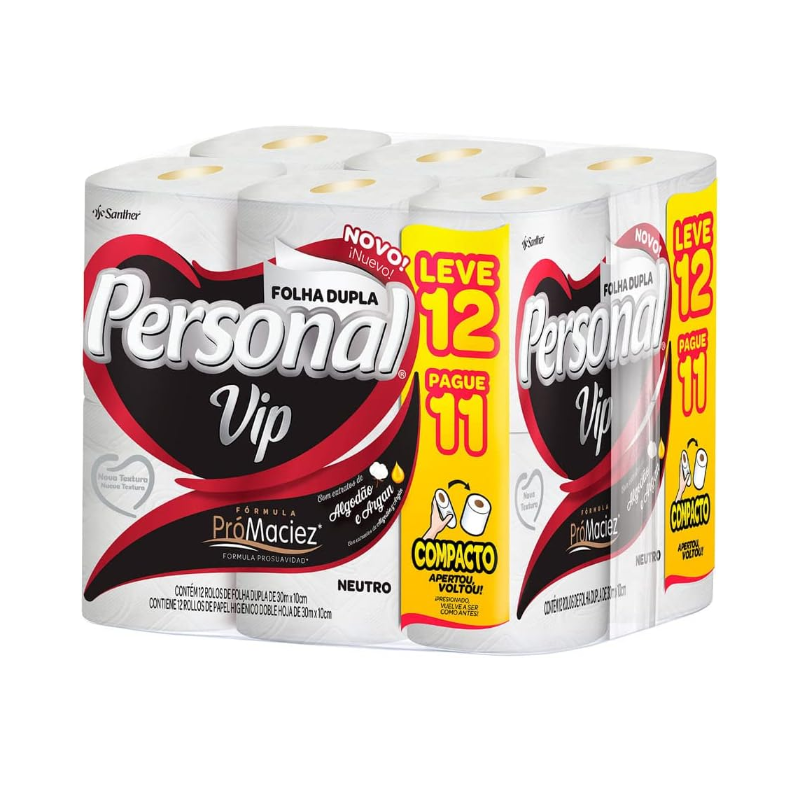 Personal VIP, Papel Higiênico, Folha Dupla, 12 unidades