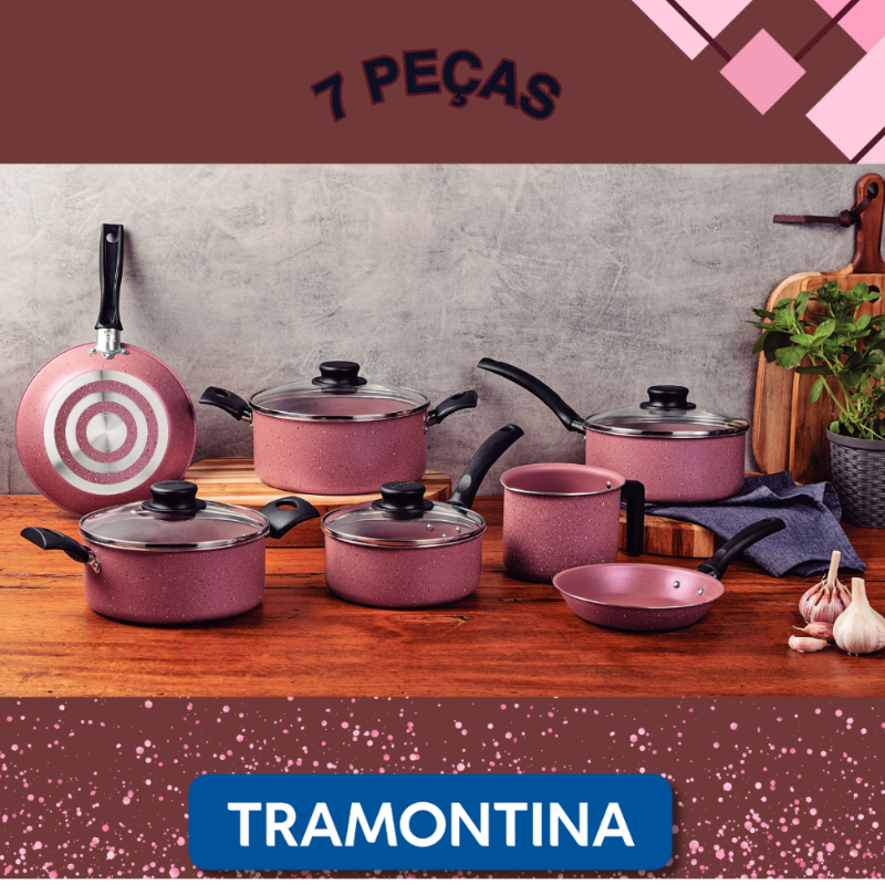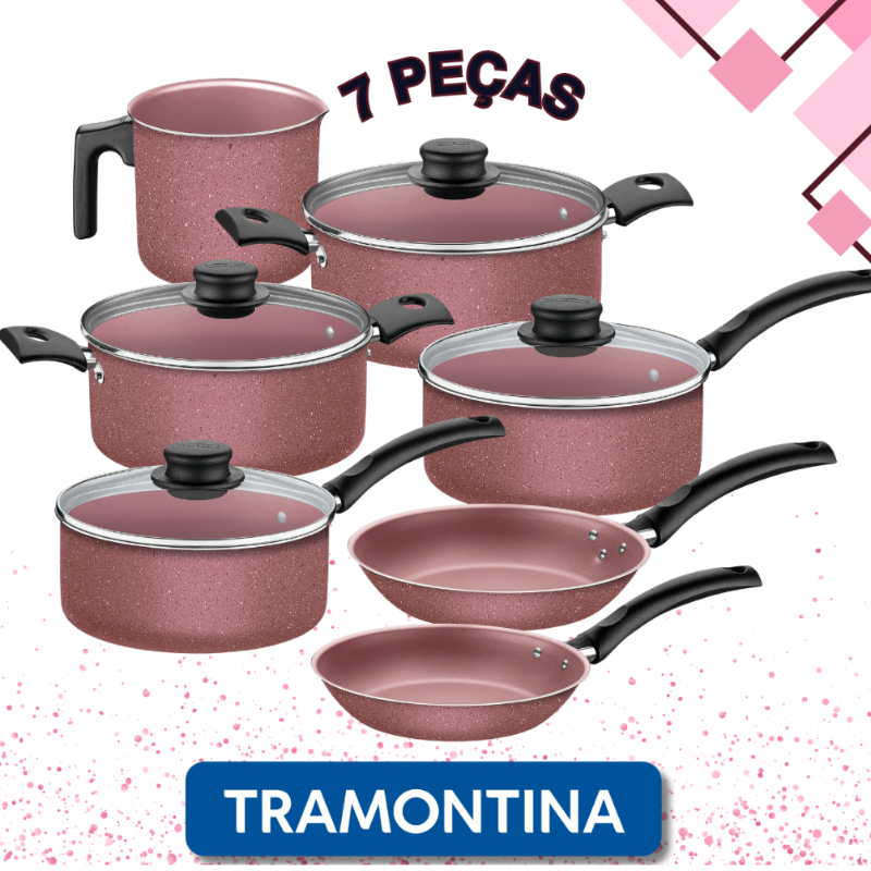 Jogo De Panela Da Tramontina 7 Pçs Alumínio Antiaderente Rosa