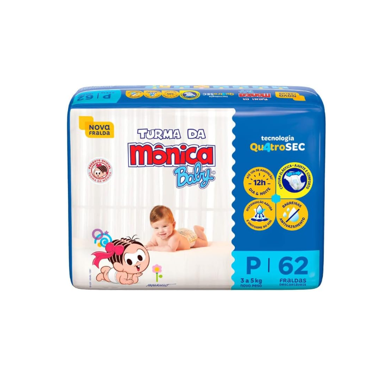 Fralda Turma da Mônica Baby Mega P 62 Unidades