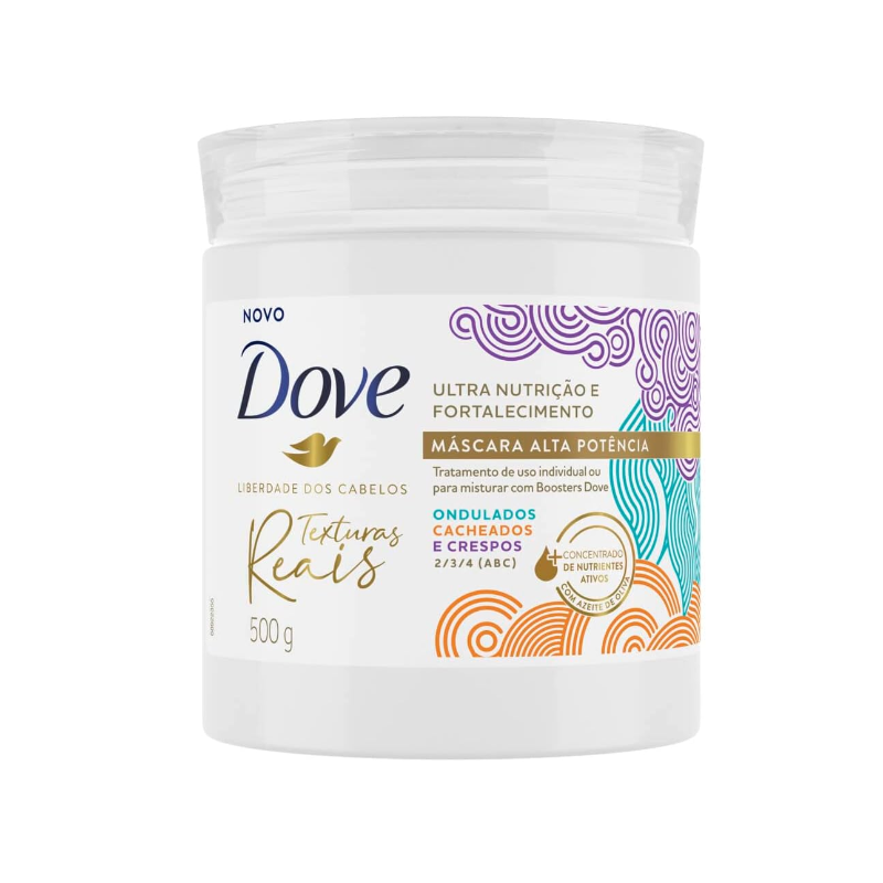 Máscara de alta potência Dove Texturais Reais para cabelos ondulados, cacheados e crespos.