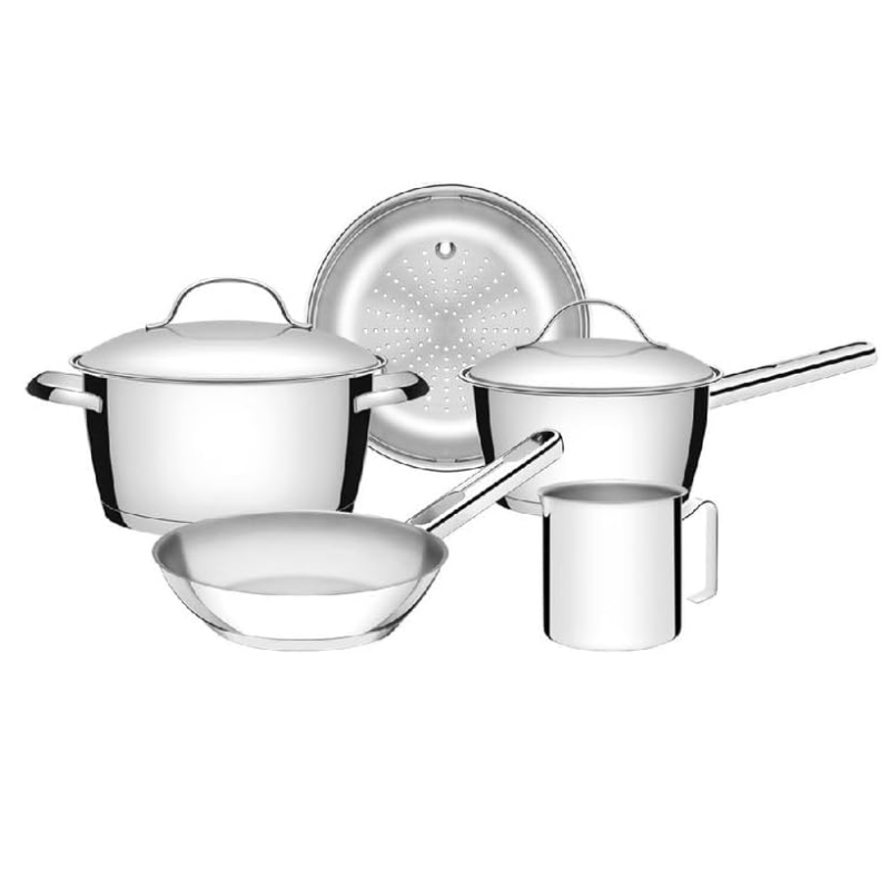 Tenha produtos práticos e diferenciados na sua cozinha. O Jogo de Panelas Tramontina Allegra em Aço Inox com Fundo Triplo 5 Peças facilita seu dia-a-dia e ainda embeleza sua cozinha. São 5 peças com design moderno que dá um toque cheio de estilo ao ambiente. Elas ainda apresentam tecnologia de fundo triplo (aço inox + alumínio + aço inox), distribuindo melhor o calor, proporcionando um cozimento mais rápido e uniforme. E o melhor, economizando mais energia! São totalmente produzidas em aço inox, material que atesta alta durabilidade e bom gosto. Acompanham tampa com saída de vapor e são ainda muito fáceis de limpar. Podendo ser lavadas diariamente na máquina de lavar louças Elas ainda impressionam pela versatilidade, podendo ser usadas em diferentes tipos de fogões.