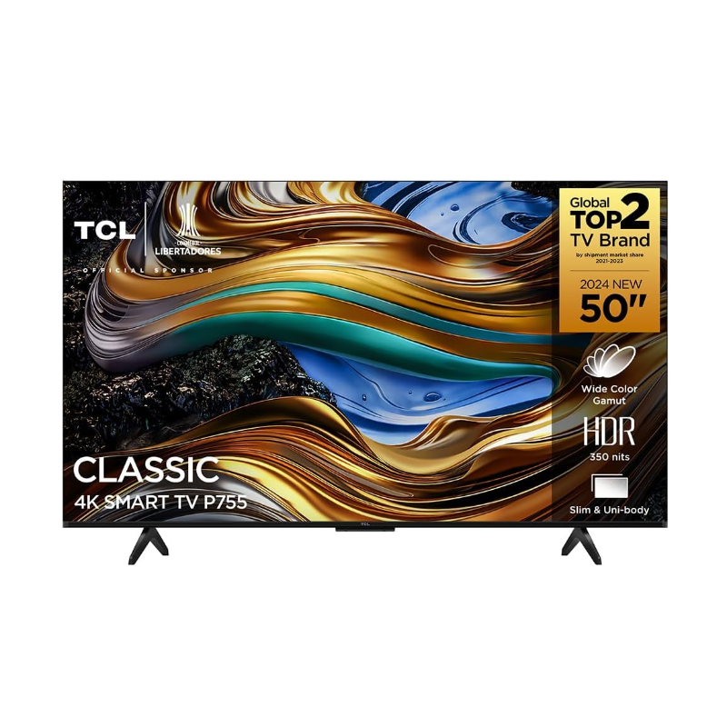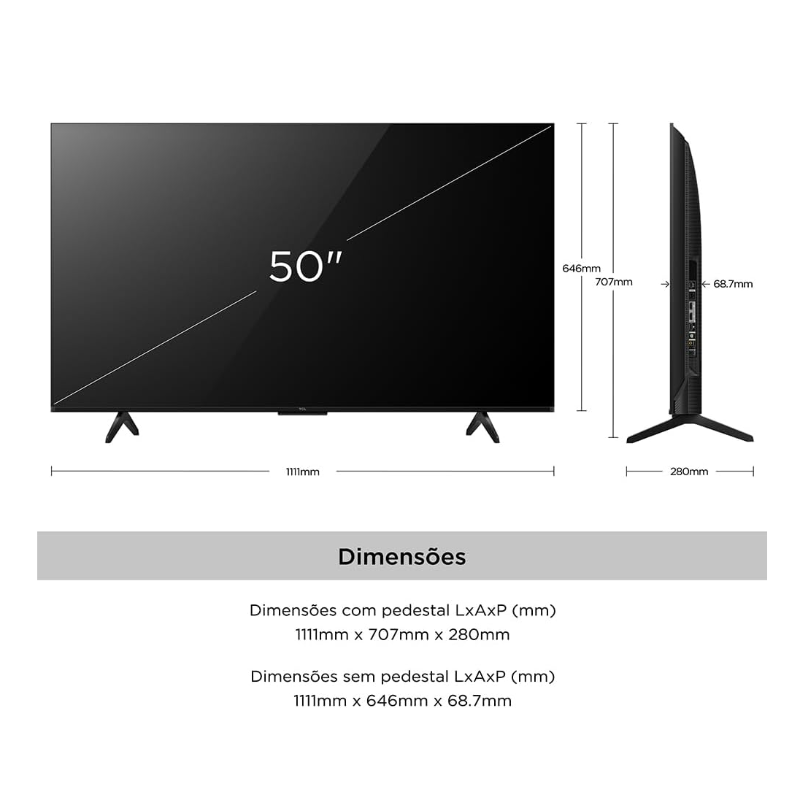 TCL LED SMART TV 50” P755 4K UHD GOOGLE TV com Wi-Fi dual band e Bluetooth integrados, Google Assistente, Dolby Vision, Dolby Atmos, HDMI 2.1, HDR10+ e design sem bordas.