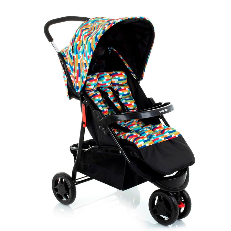 O Carrinho Delta da Voyage é um carrinho de três rodas, moderno, com barra frontal removível e um confortável colchonete acolchoado, removível e lavável, para acomodar crianças dos 0 ao 15 kg. Possui cinto de segurança de 5 pontos, com altura regulável. A inclinação do encosto pode ser ajustada para a posição mais deitada e a altura do apoio de pés, até a posição mais fechada.