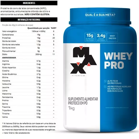 Max Titanium, Whey Protein Pro Com Bcaa E Aminoácidos 1kg Baunilha
