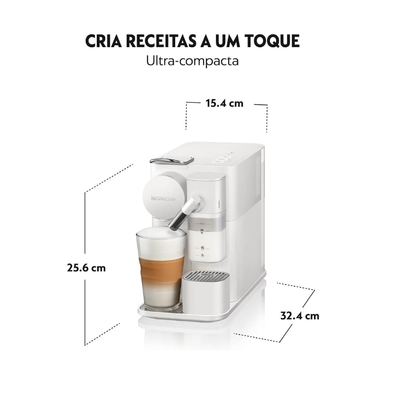 A Lattissima One é para quem aprecia um bom café com leite de vez em quando.Um Cappuccino ou um Latte Macchiato? Aproveite a sua Lattissima One para experimentar a perfeita harmonia entre café e o leite, seja no café da manhã, após o almoço ou até mesmo no fim do dia!Como a vida deve ser baseada em prazeres simples, basta encher o jarro de leite com a quantidade que você deseja e a máquina Lattissima One irá espumar diretamente em sua xícara. E com seu único botão, você poderá fazer qualquer receita que desejar, instantaneamente.Esta máquina também apresenta um design compacto, alavanca cromada, brilho sutil e padrões de linha fosca.