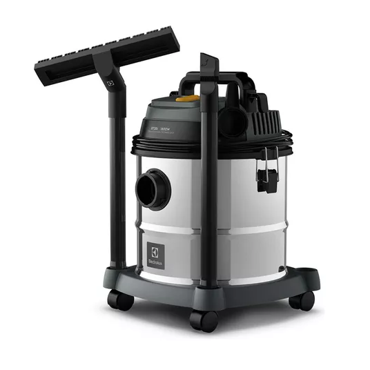 O design moderno com barril em inox de 20L e o motor com potência de 1800W fornecem capacidade para uma limpeza completa de áreas internas e externas, aspirando água e pó em um fluxo constante e controlável de acordo com a necessidade.