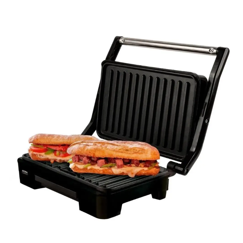 Com o Grill Asteria Compact da Mallory seus lanches e comidas vão ficar muito mais gostosos e saudáveis! Com uma potência de 900W e formato retangular, ele é multifunção. Que significa que você pode preparar desde deliciosos hambúrgueres até suculentos filés. E tudo isso com total praticidade, pois além de ser super versátil ele possui coletor de gordura integrado e chapa antiaderente, que vai impedir que os alimentos grudem. Vem com coletor de gordura. E tem mais, sua cor preto e prata, vai deixar sua cozinha mais bonita e moderna. Reúna a família e amigos e prepare deliciosas receitas com esse grill da Mallory.