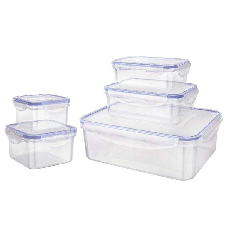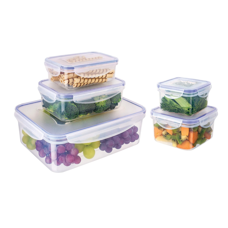 Esse é um conjunto de potes herméticos para o armazenamento de diversos tipos de alimentos, pois são livres de bpa e atóxicos. Além disso, os potes são fáceis de fechar, podem Ir ao freezer, lava-louças e micro-ondas.