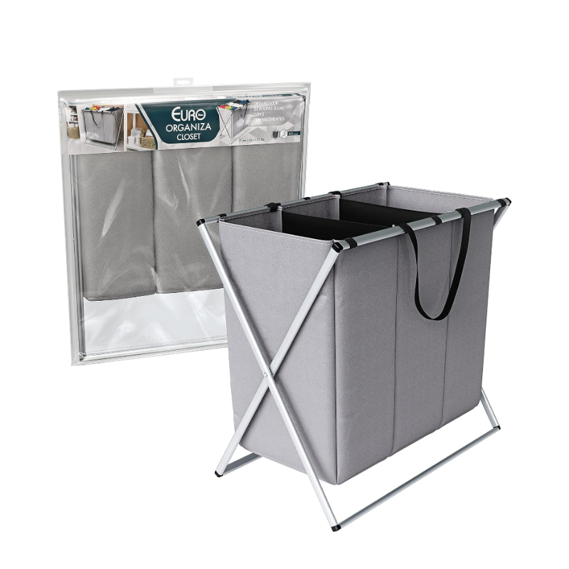 A linha de organizadores da Euro Home foi projetada com base nas necessidades atuais de organização e design. O organizador para roupas sujas é perfeito para quem deseja separar de forma prática as roupas brancas, pretas e coloridas ou também de cada um dos membros da casa. Quando não estiver sendo usado, você pode dobrá-lo para guardar sem ocupar espaço.