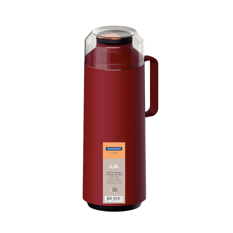 Garrafa Térmica Tramontina Exata em Polipropileno Vermelho com Ampola de Vidro 1 L