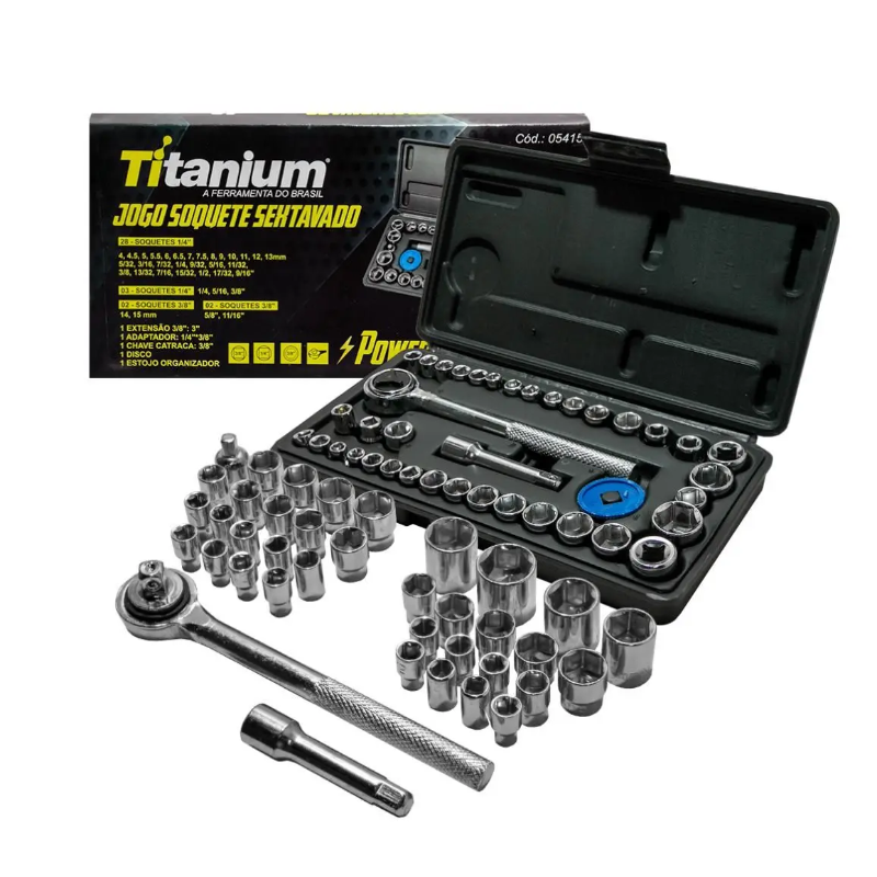 Jogo Soquetes Sextavado C/ Catraca 40 Pcs, 5131/5414,Titanium