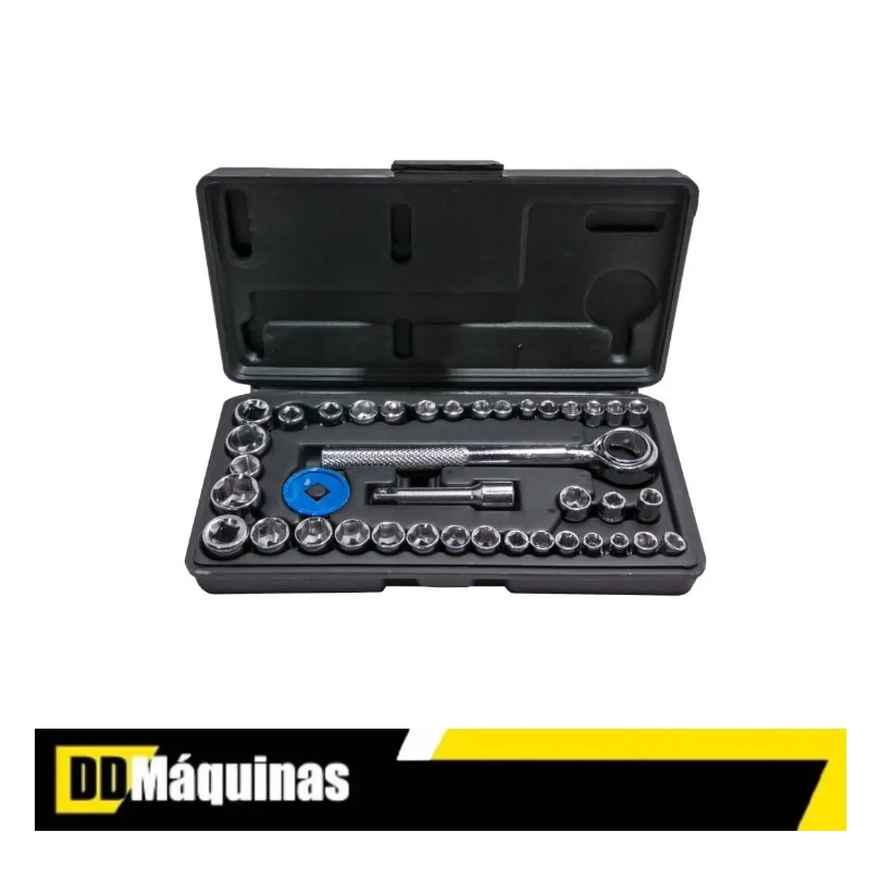 Jogo de soquete sextavado 1/4"e 3/8” com 40 peças é uma ferramenta projetada para tornar o trabalho de aperto e soltura de porcas e parafusos muito mais rápido e leve.