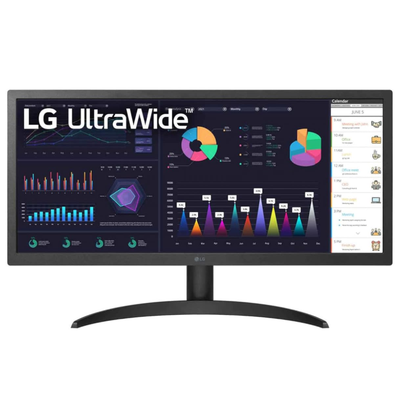 O monitor LG UltraWide 26” tem resolução Full HD (2560x1080) e 33% mais espaço de tela se comparado a outros monitores comuns. Permite realizar várias tarefas com eficiência, sem ficar alternando entre aos programas. Com alguns cliques você pode personalizar a sua área de trabalho dividindo ou ajustando as opções de exibições.