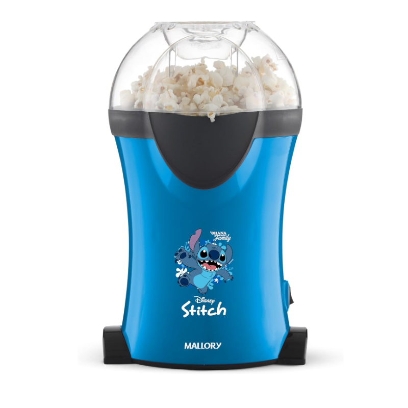 A Pipoqueira STITCH da Mallory faz pipocas sequinhas e livres de óleo. Possui bocal expedidor que derrama suas pipocas direto na tigela além de um copo medidor que serve também para derreter manteiga. Tem botão liga/desliga e pés antiderrapantes.