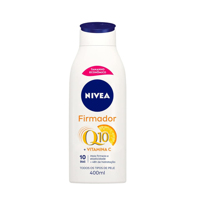 O que é? NIVEA Loção Hidratante Firmador Q10 + Vitamina C Todos os Tipos de Pele é enriquecido com dois poderosos antioxidantes, Q10 e Vitamina C que cuidam da sua pele diariamente. Para que serve? Com ação contra os radicais livres, ela melhora visivelmente a firmeza e a elasticidade da pele em apenas 10 dias, além de prevenir a flacidez e hidratar intensamente por 48 horas. Indicado para todos os tipos de pele, NIVEA Loção Hidratante Firmador Q10 + Vitamina C contém ingredientes cuidadosamente selecionados, como creatina e carnitina, e não possui ingredientes de origem animal. Além disso, é dermatologicamente testado. Use continuamente para manter os efeitos. Experimente um cuidado mais completo com a pele em sua rotina.
