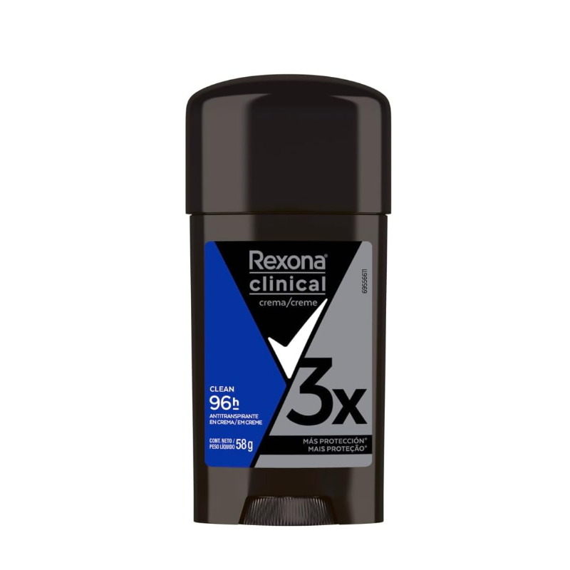 O Rexona Clinical Antitranspirante em Creme Clean oferece até 96 horas de proteção contra transpiração e mau odor, com 3 vezes mais eficácia que os antitranspirantes comuns. Ideal para quem precisa de proteção prolongada em situações de transpiração intensa.