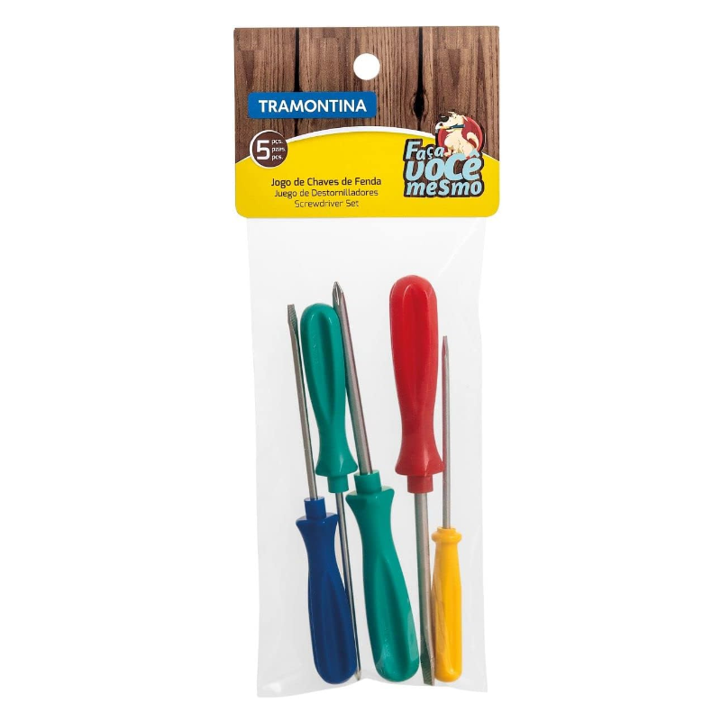 om a experiência nas atividades em casa, aprendemos que ter mais de uma opção acaba sendo o diferencial para não perder tempo nos trabalhos e reparos. Pensando nisso, trouxemos para você o Jogo de Chaves de Fenda Tramontina 5 Peças! Um jogo que conta com chave de fenda clipe, ponta chata e ponta cruzada, que vai lhe auxiliar em diversas situações. Tudo isso em uma estrutura que alia resistência, durabilidade e conforto!chaves