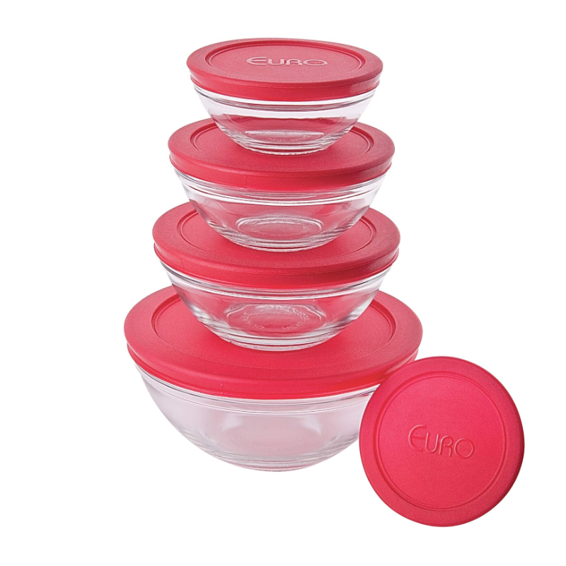 o conjunto de potes da euro foi desenvolvido em vidro resistente para você armazenar os mais variados tipos de alimentos em sua geladeira ou armários. Estes 5 potes têm tamanhos diferentes, comportam diversos alimentos, contam com design moderno e tampa com fechamento hermético para lacrar as suas refeições com segurança. Podem ser usados na geladeira e até na lava-louças.
