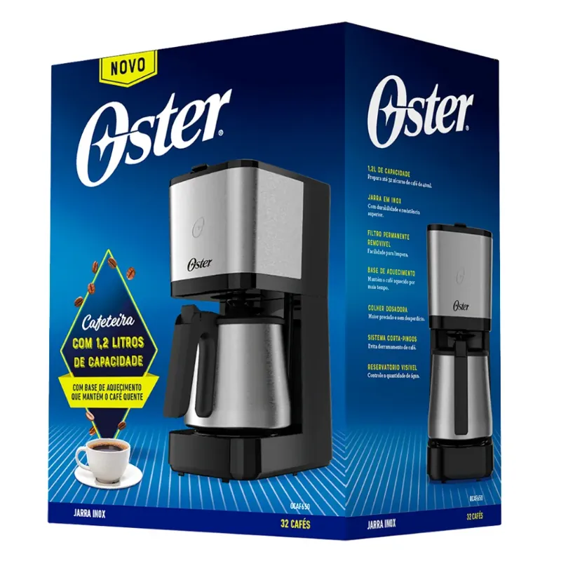 - Com a Oster o seu café nunca mais será o mesmo! As cafeteiras desta marca oferecem a possibilidade de usar café moído ou direto em cápsulas, elas também são muito práticas quando se trata de preparar o melhor café com o mais pequeno detalhe e aromas que irão deliciar a todos.