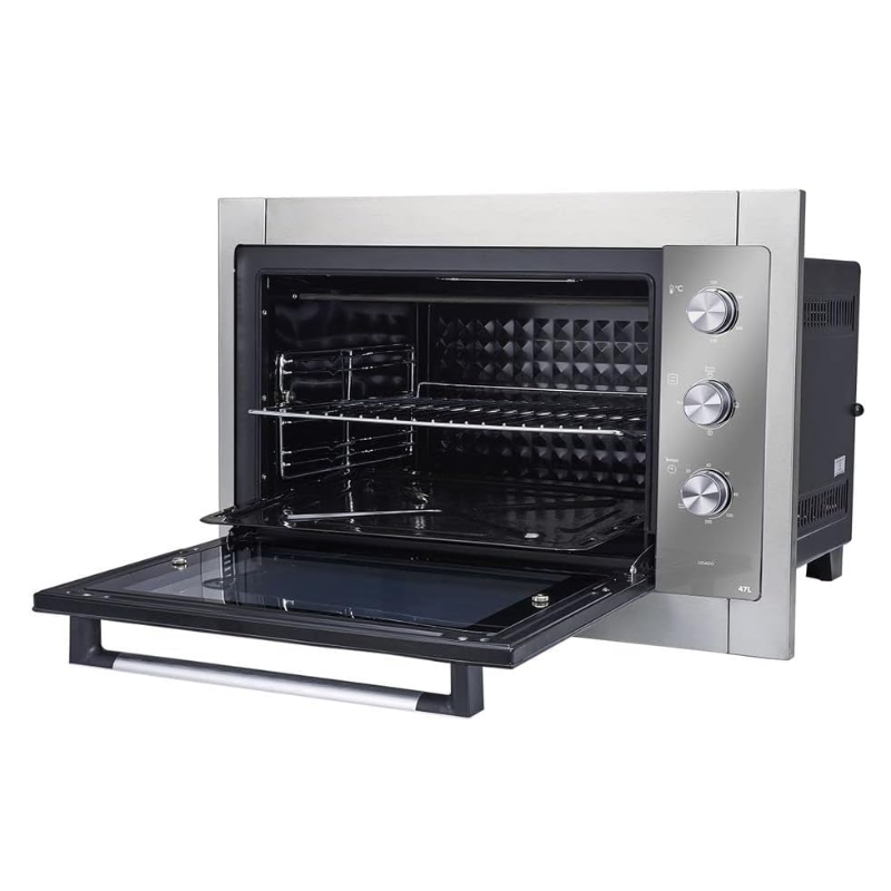 O Forno Elétrico de Embutir Philco PFE47E é o item que faltava para deixar sua cozinha ainda mais moderna, prática e bonita. Possui multi-funções: Aquece, assa, tosta, doura, gratina e grelha. Tem com controle individual de temperatura para distribuir melhor o calor graças as duas resistências superior e inferior. Com timer de 120 minutos e desligamento automático permite mais praticidade para programar o preparo de diversas receitas. Sua grelha deslizante com regulagem de altura facilita o manuseio e o acesso ao alimento. É capaz de deixar os alimentos mais dourados e crocantes ao utilizar a Função Dourar. Equipado com luz indicadora de funcionamento luz interna para verificação dos alimentos enquanto estão sendo preparados. O Coletor de Gordura facilita a remoção da gordura do forno e limpeza do equipamento. • Revestimento interno esmaltado; • Botão seletor de temperatura até 230°C; • Botão Timer de 120 minutos, com desligamento automático e sinal sonoro; • Função manter ligado; • Luz Interna; • Botões seletores das resistências inferior e superior; • Coletor de resíduos; • Composição Metal, Vidro e Plástico; • Disponível em 127V e 220V; • Garantia de 1 Ano.