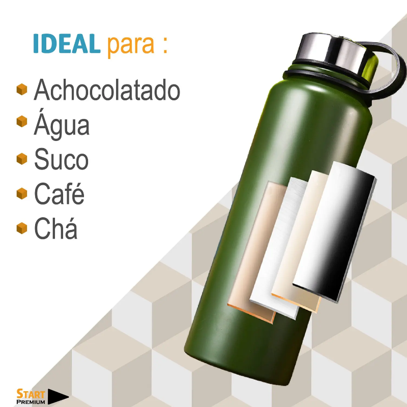 Leve essa garrafa para seu trabalho, faculdade e viagens e tenha sempre em mãos sua bebida na temperatura ideal. Garrafa Feita em AÇO INOX, conserva a temperatura dos líquidos por muito mais tempo, até 4 horas para ambos os líquidos frios ou quentes. Sistema de abertura simples e fácil, basta fazer o desroqueio da tampa e pronto, e não se preocupe em ficar segurando a tampa , esse modelo tem uma alça de silicone segurando a tampa , para que a mesma não se perca ou caia no chão.