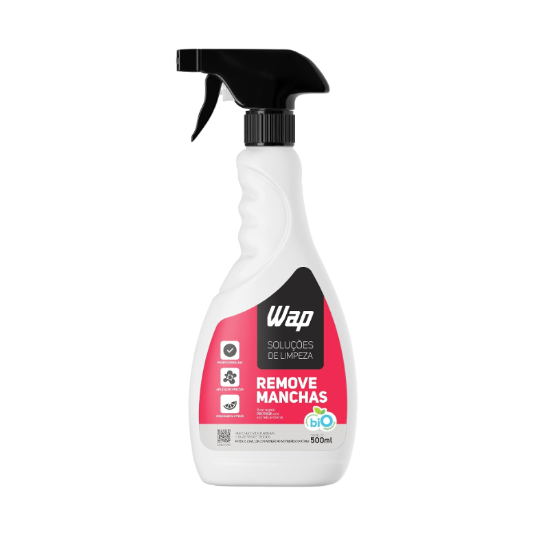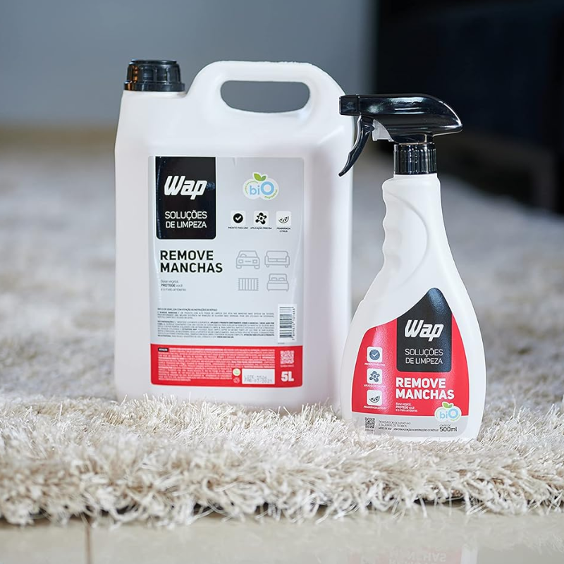 Encontre o Remove manchas da WAP nas versões de 500ml e 5L, indicado para limpezas residenciais e profissionais.