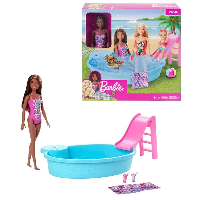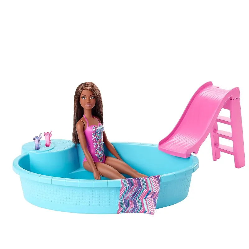 Barbie Conjunto de Brinquedo Maiô Rosa e Piscina