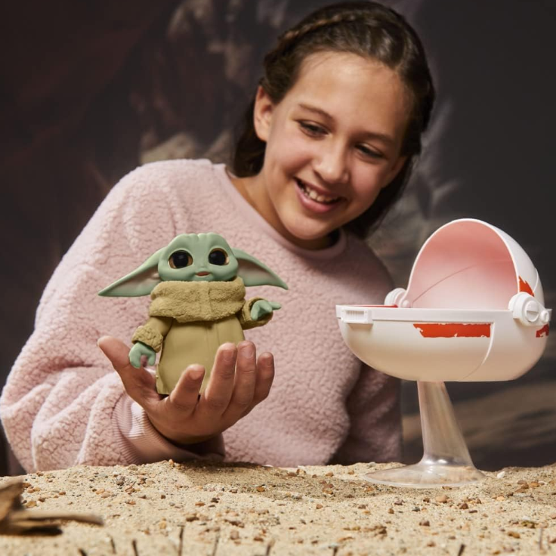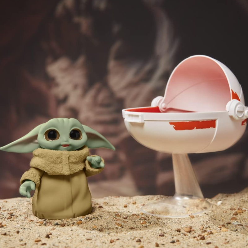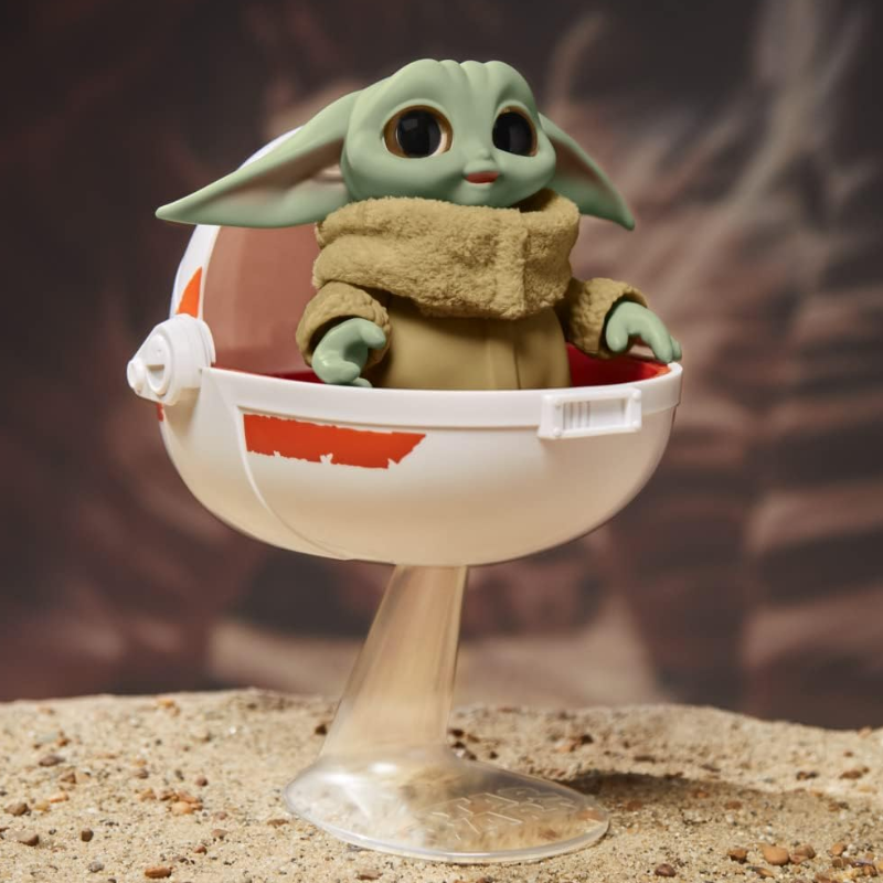 Grogu (The Child), mais conhecido como "Baby Yoda," chegou para participar de uma grande aventura com este brinquedo animatrónico Star Wars, que vem com berço voador, cobertura e base. As crianças podem brincar com o Grogu e seus movimentos de cabeça ou colocá-lo no berço para ativar sons de voo. Para ativar as combinações de sons e movimento, as crianças podem tocar na cabeça do Grogu, virá-lo de cabeça para baixo, colocá-lo de lado ou posicioná-lo no berço voador. om 12 cm de altura, este boneco Star Wars é inspirado na série The Mandalorian da Disney+. Este brinquedo Star Wars é o presente perfeito para crianças a partir dos 4 anos. Star Wars products are produced by Hasbro under license from Lucasfilm Ltd. Hasbro and all related terms are trademarks of Hasbro.