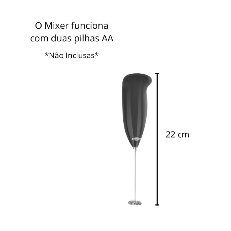 Descomplique a sua vida na cozinha com o Mixer da linha Descomplica. Prático, o Mixer funciona com duas pilhas AA, não inclusas. Seu mecanismo, permite que o líquido seja misturado formando um pequeno redemoinho enquanto o líquido é misturado no interior do recipiente. Além disso, o corpo do mixer é completamente vedado, não permitindo que o líquido entre em contato com a parte elétrica do misturador que, funciona de maneira bastante simples: Basta adicionar o líquido que deseja misturar na caneca, apertar o botão no topo do produto e pronto, o líquido será misturado de maneira rápida e eficiente. Disponível na cor preta, o mixer da linha Descomplica, possui 22 cm.