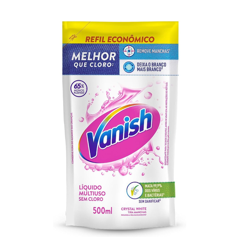 Tira Manchas Vanish Líquido Crystal White para roupas brancas Refil Econômico 500ml