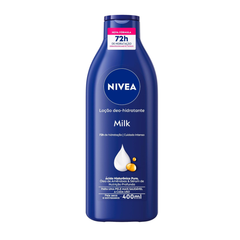 O que é? NIVEA Loção Hidratante Milk Pele Seca a Extrasseca é um produto desenvolvido para hidratar profundamente a pele, proporcionando um cuidado intensivo. Para que serve? Sua textura cremosa e suave oferece uma agradável sensação de maciez, cuidando e protegendo a pele do ressecamento. NIVEA Loção Hidratante Milk Pele Seca a Extrasseca possui uma fórmula enriquecida com duas vezes mais óleo de amêndoas, nutre intensamente por até 48 horas. Indicado especialmente para peles secas e extrassecas, este hidratante corporal é livre de corantes, sem álcool etílico e não contém ingredientes de origem animal. Denso e com a clássica fragrância de NIVEA, deixa a pele visivelmente mais saudável e bonita.