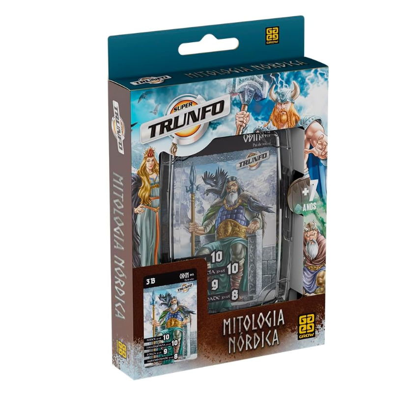 Super Trunfo Mitologia Nórdica traz 32 cartas com ilustrações e informações sobre os poderosos deuses e guerreiros das lendas nórdicas. Em qual item o mito da sua carta é o melhor? Será no poder? Na inteligência? Ou você tem o Super Trunfo? Escolha, compare e vença esta emocionante disputa!