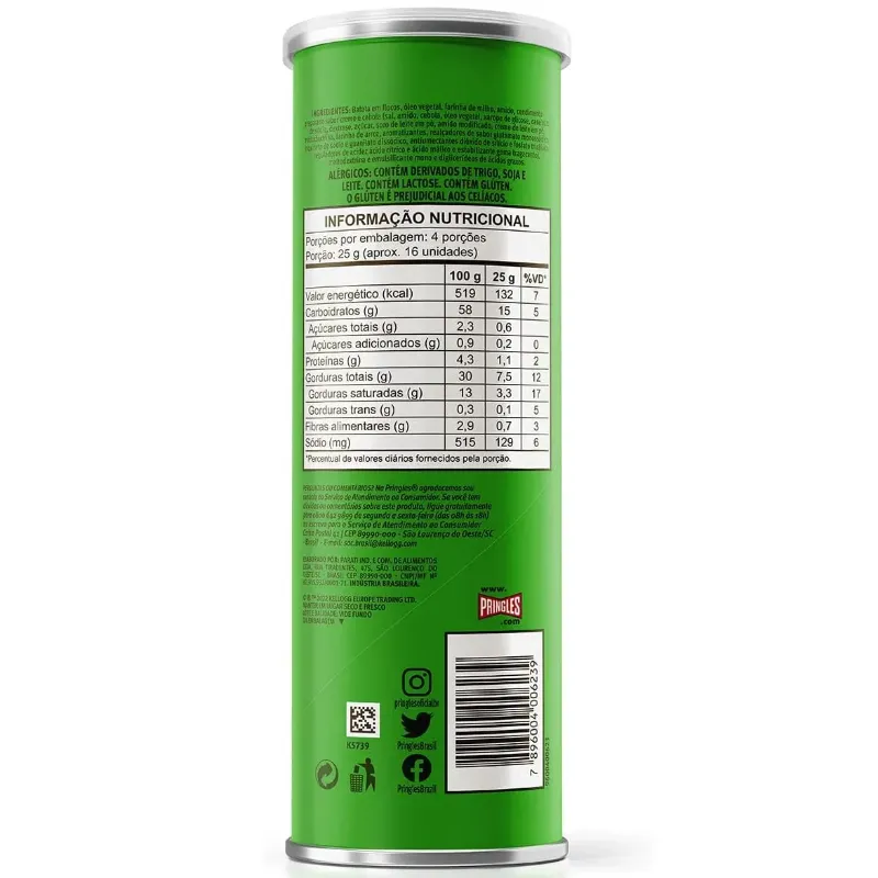 A Batata Pringles Creme e Cebola combina o sabor suave do creme com o sabor levemente adocicado da cebola, resultando em um sabor equilibrado e saboroso que agrada a muitos paladares. As batatas são ótimo lanche para serem saboreadas sozinhas ou acompanhadas de outros petiscos. Práticas para serem levadas em viagens, no trabalho ou um piquenique. É a pedida certa para comer em qualquer lugar, a qualquer hora.