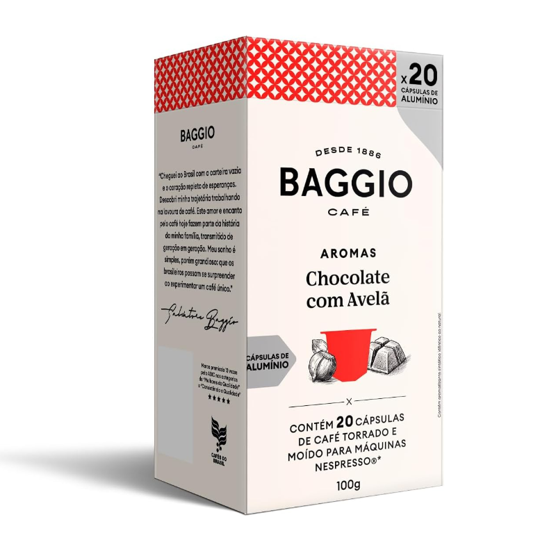 Cápsulas de Café Baggio Café Aroma Chocolate com Avelã, 20 cápsulas