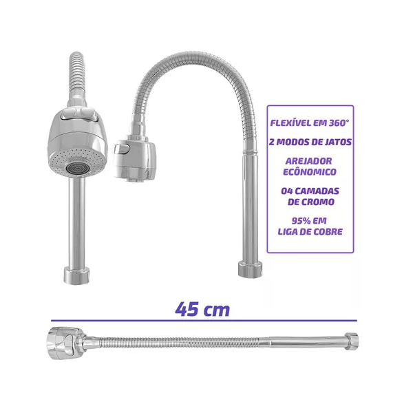 Torneira com Filtro Pia Cozinha de Parede Bica Flexível Metal 360º
